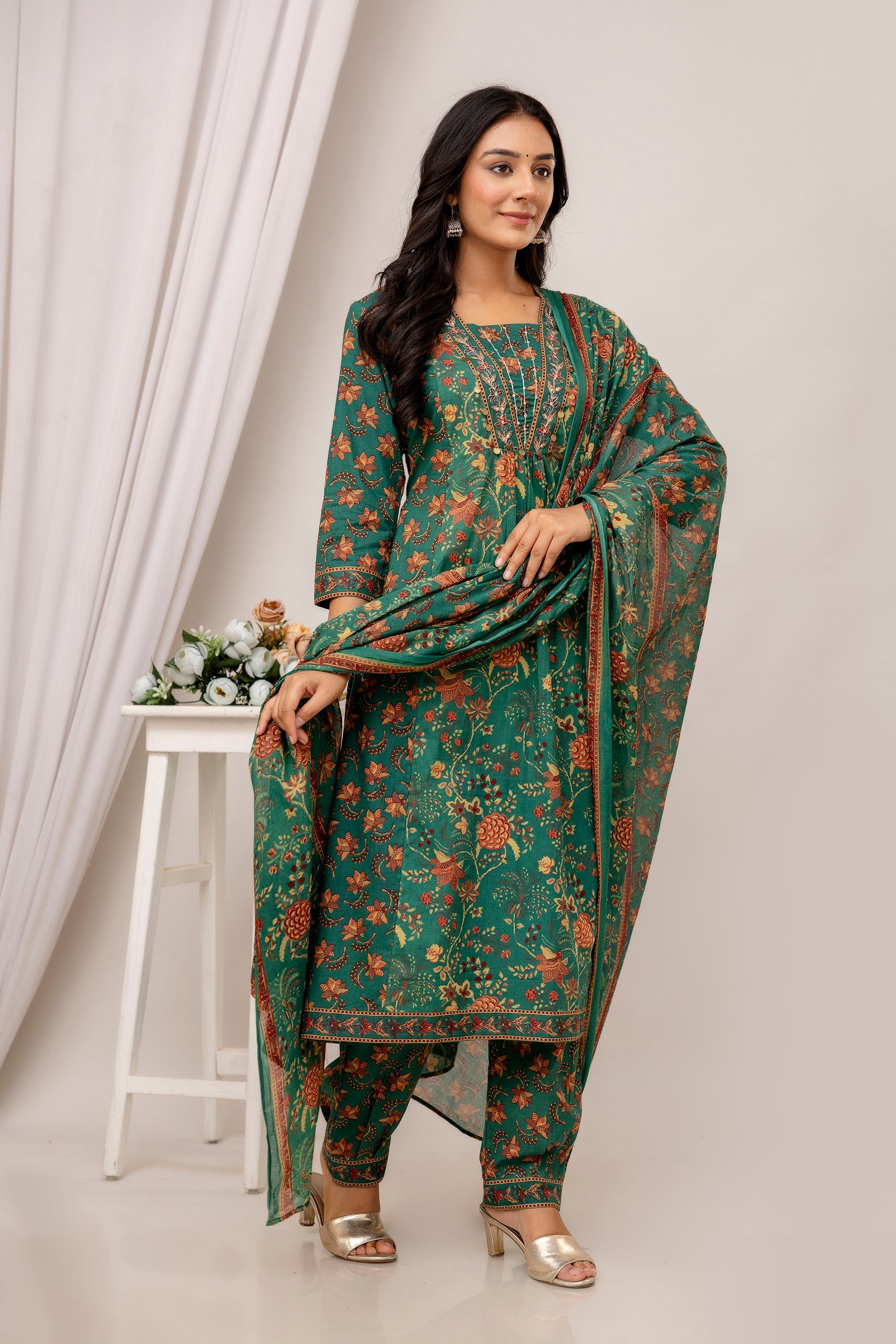 Upgrade your everyday wardrobe with the comfort and style of the Forest Green Cotton Kurta Set. This versatile 3-piece set is crafted from 100% breathable cotton, making it perfect for staying cool and comfortable throughout the year.
