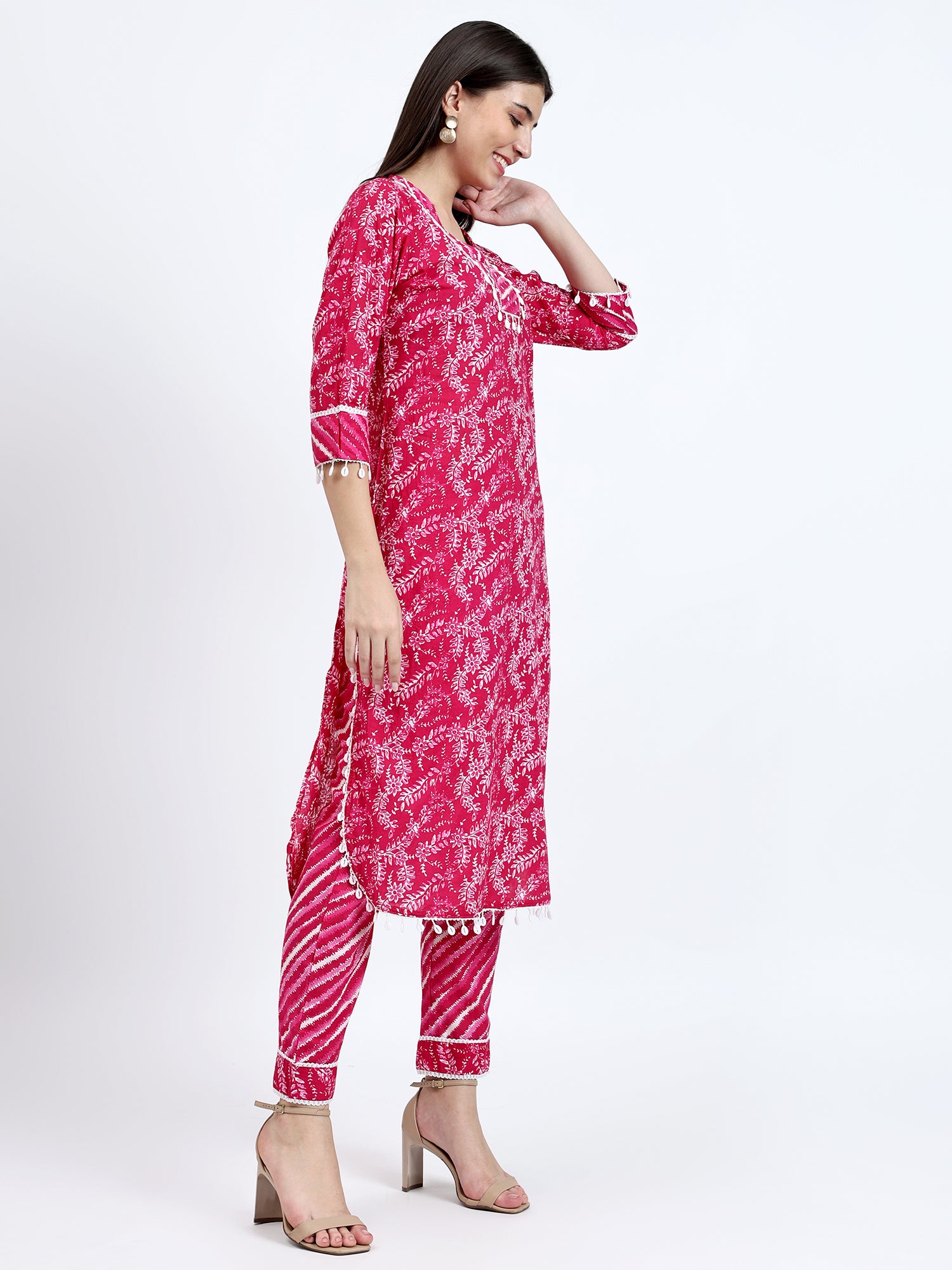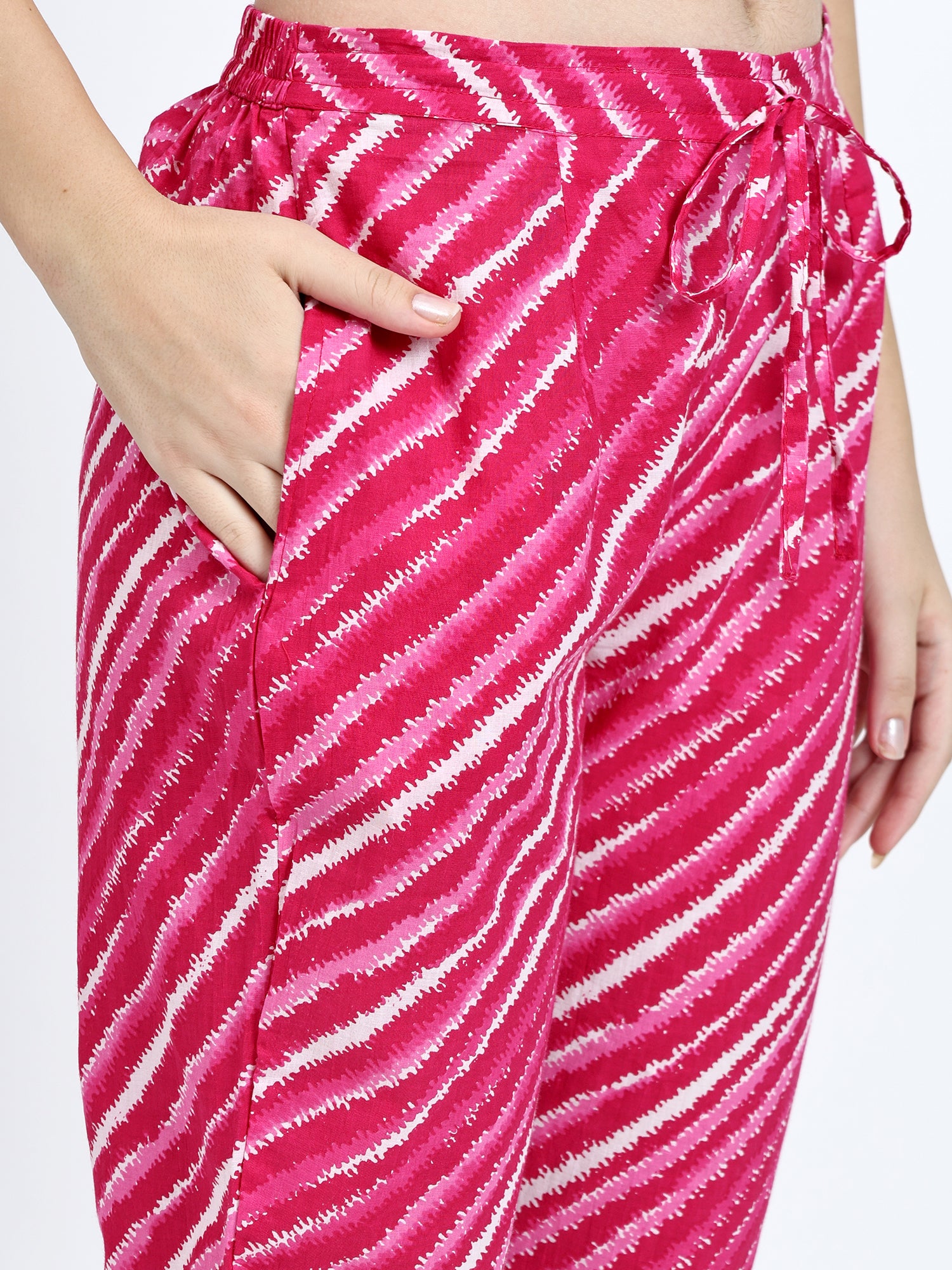 Embrace effortless style with our elegant Pink Cotton Lehariya Print Kurta Pant Set. Crafted from pure cotton, this 2-piece kurta pant set brings together traditional charm and modern elegance, making it a perfect choice for any occasion.