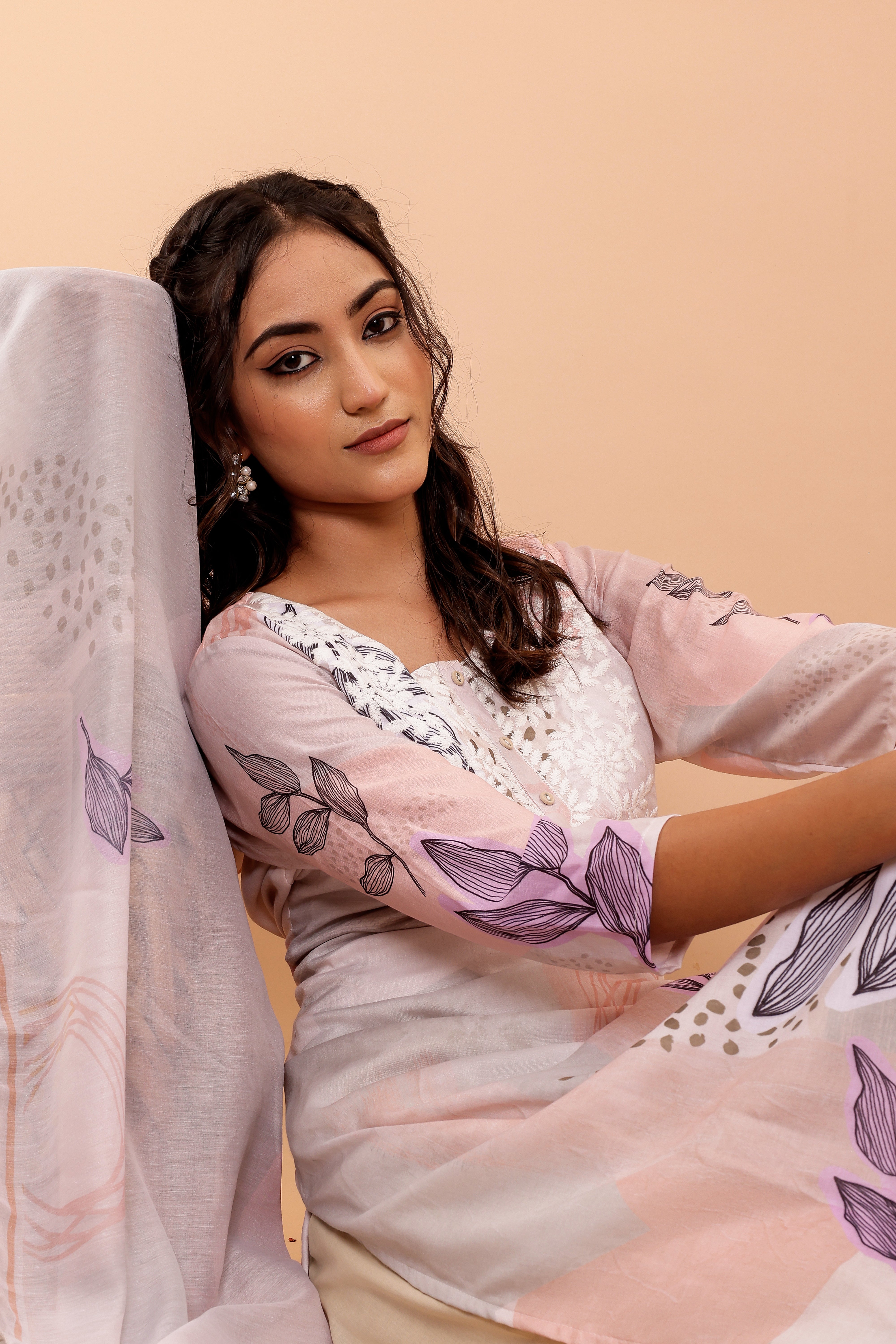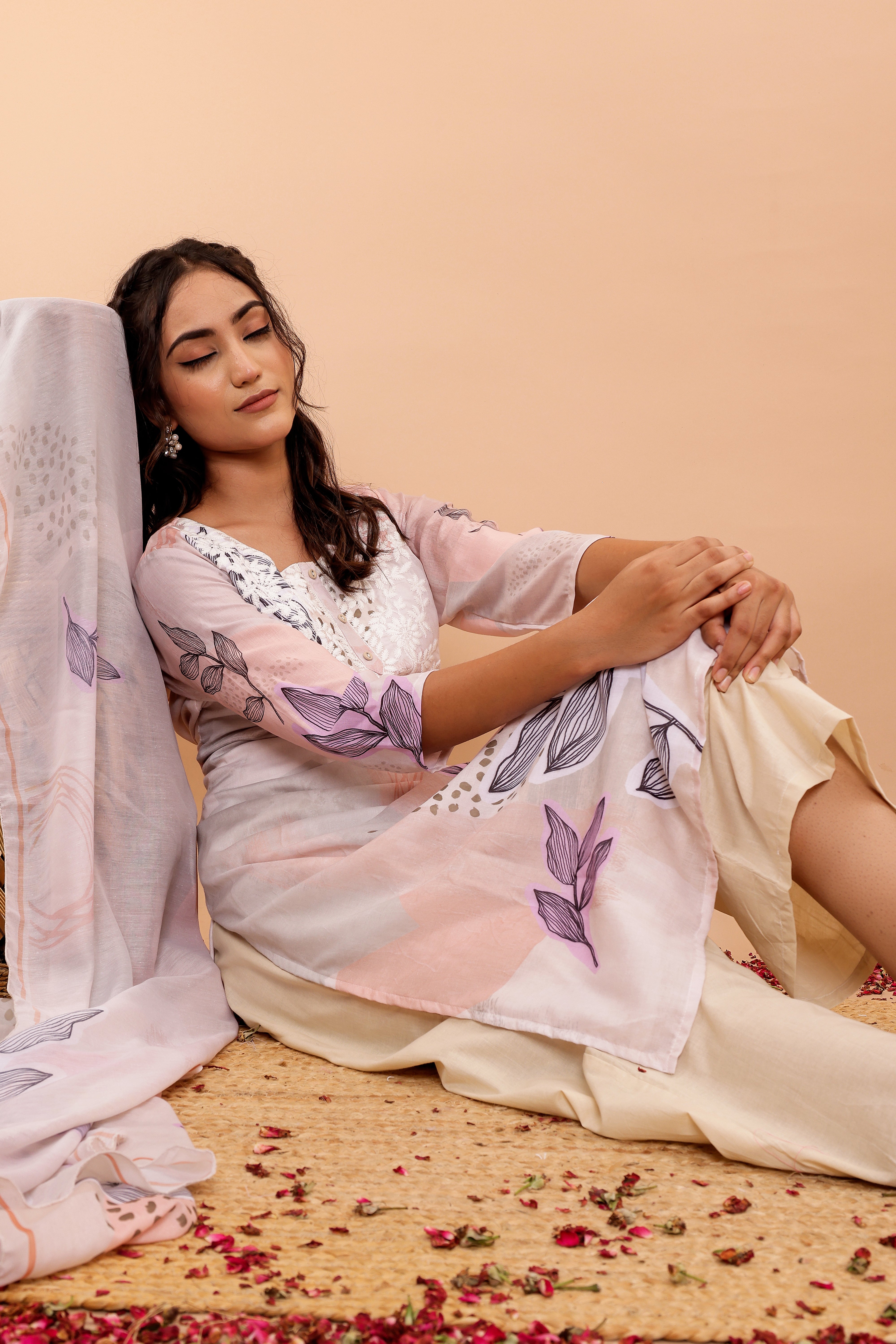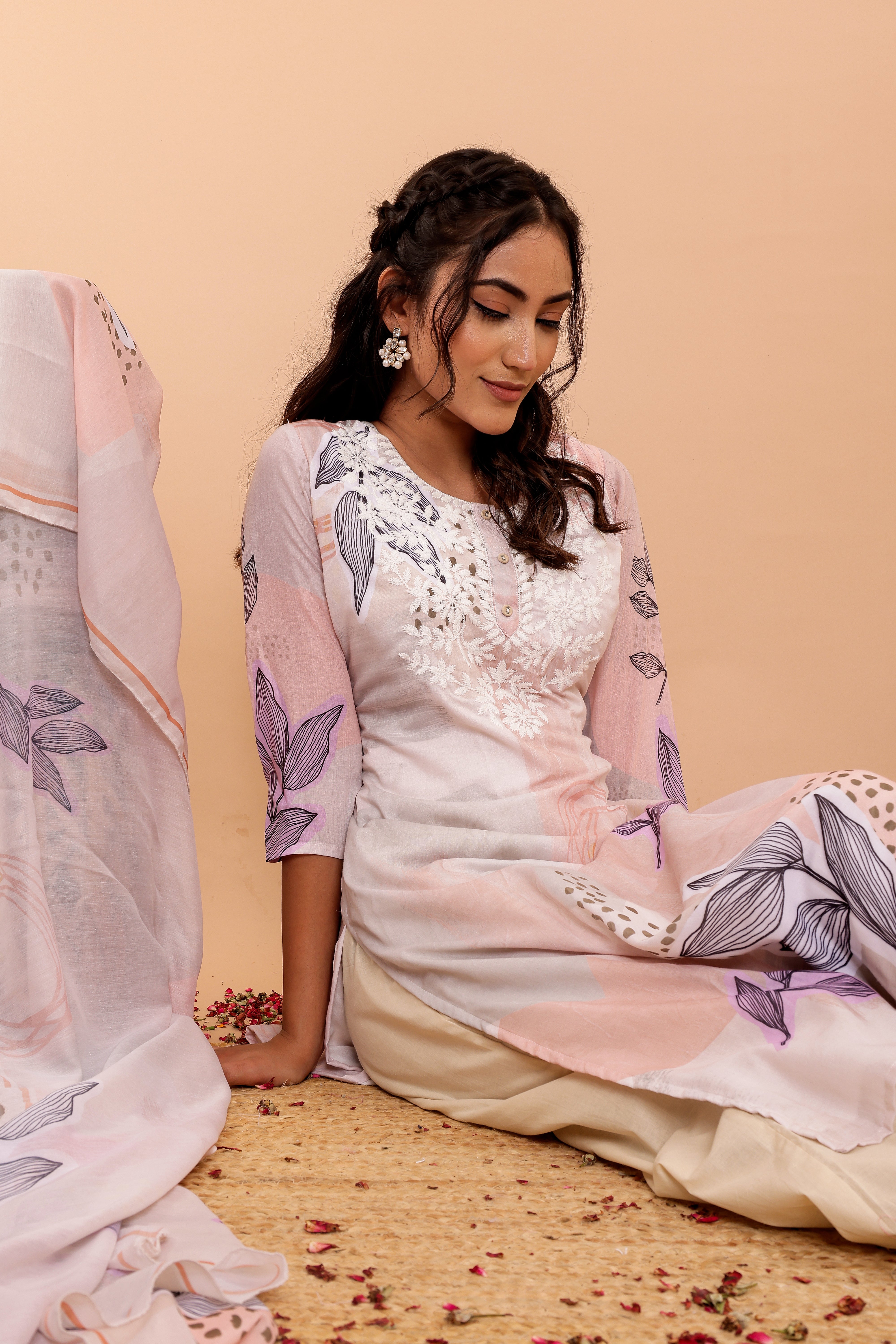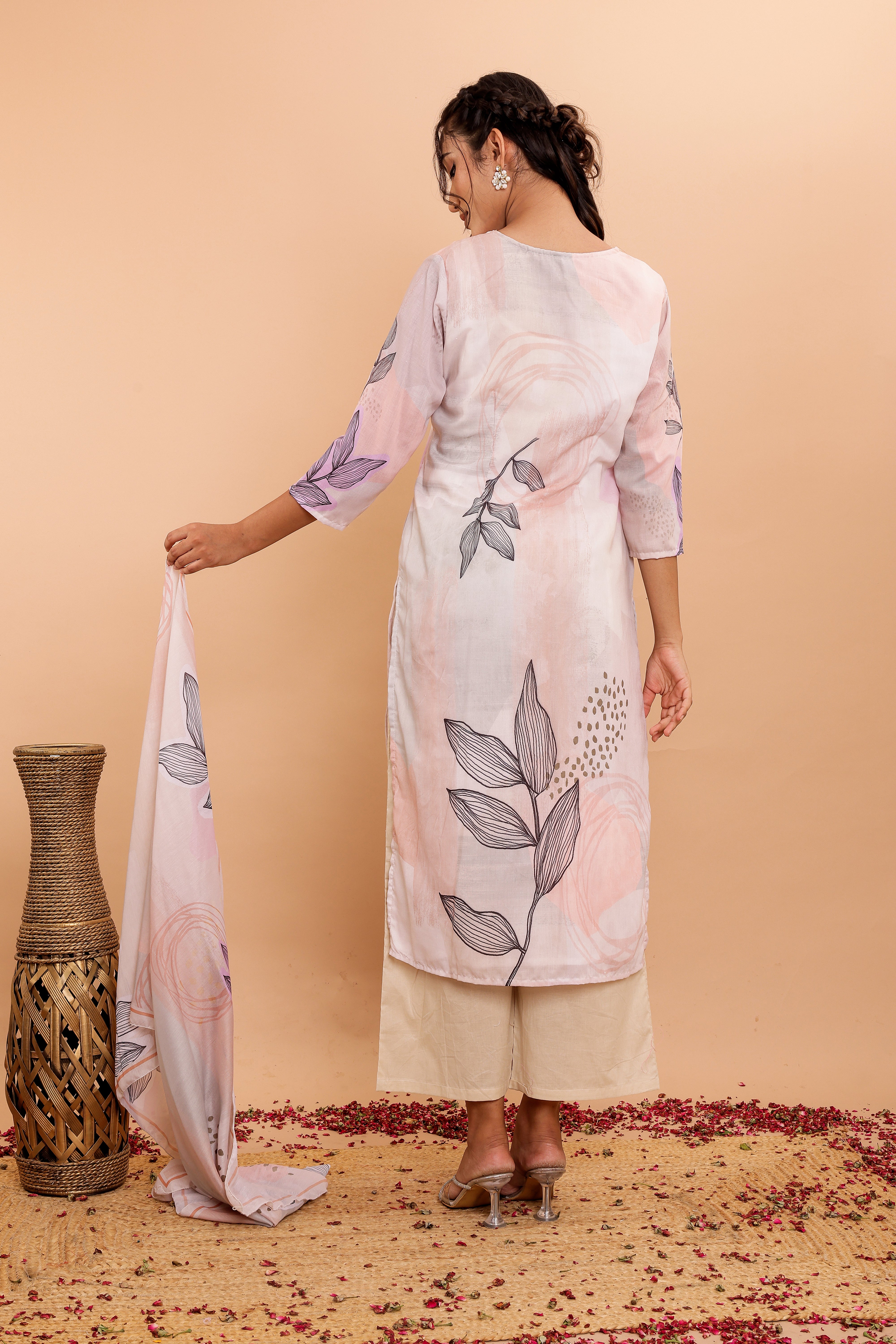 The set includes wide pants designed for comfort and style, complementing the kurta perfectly. The soft fabric dupatta, adorned with a matching digital print, completes the ensemble with grace.