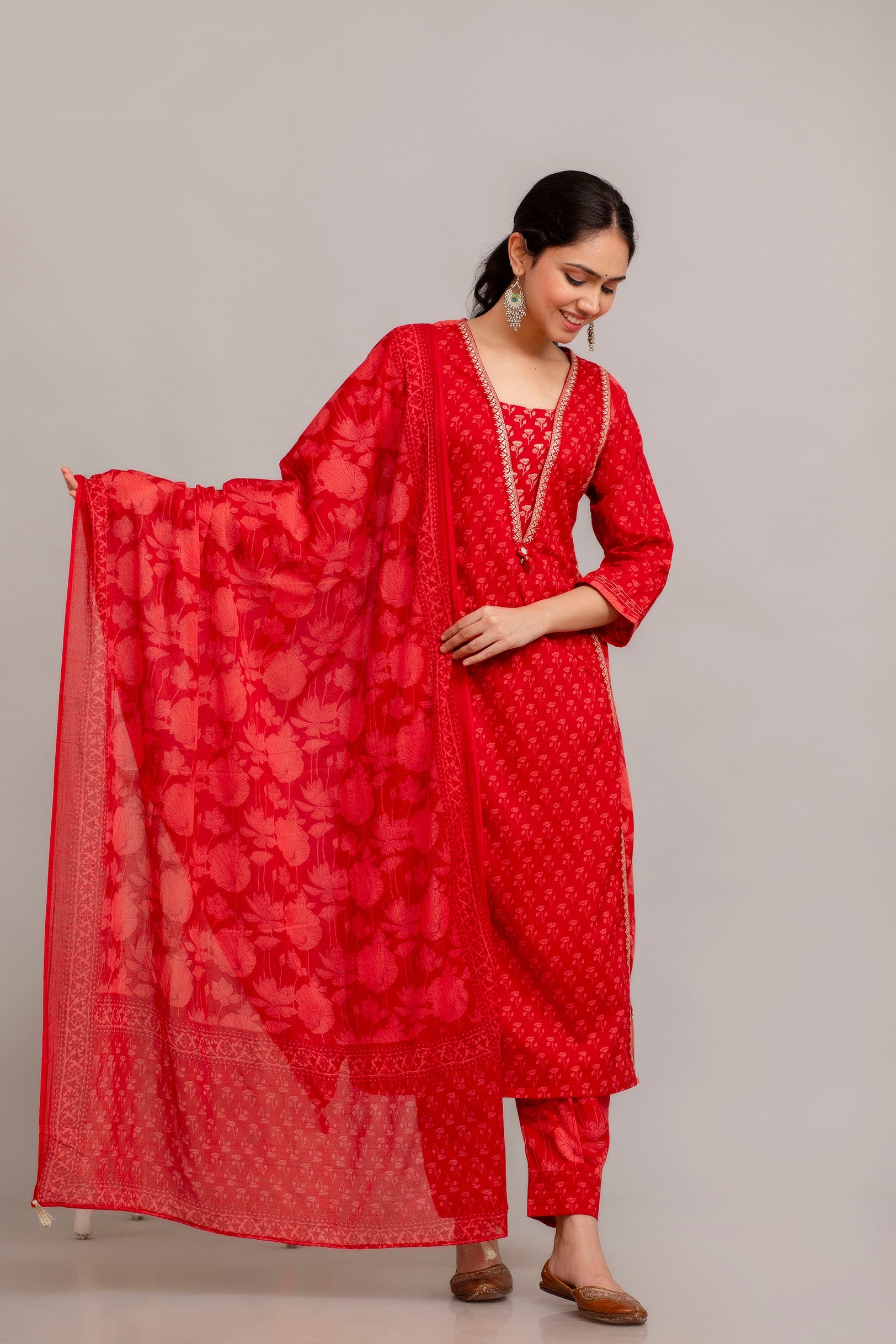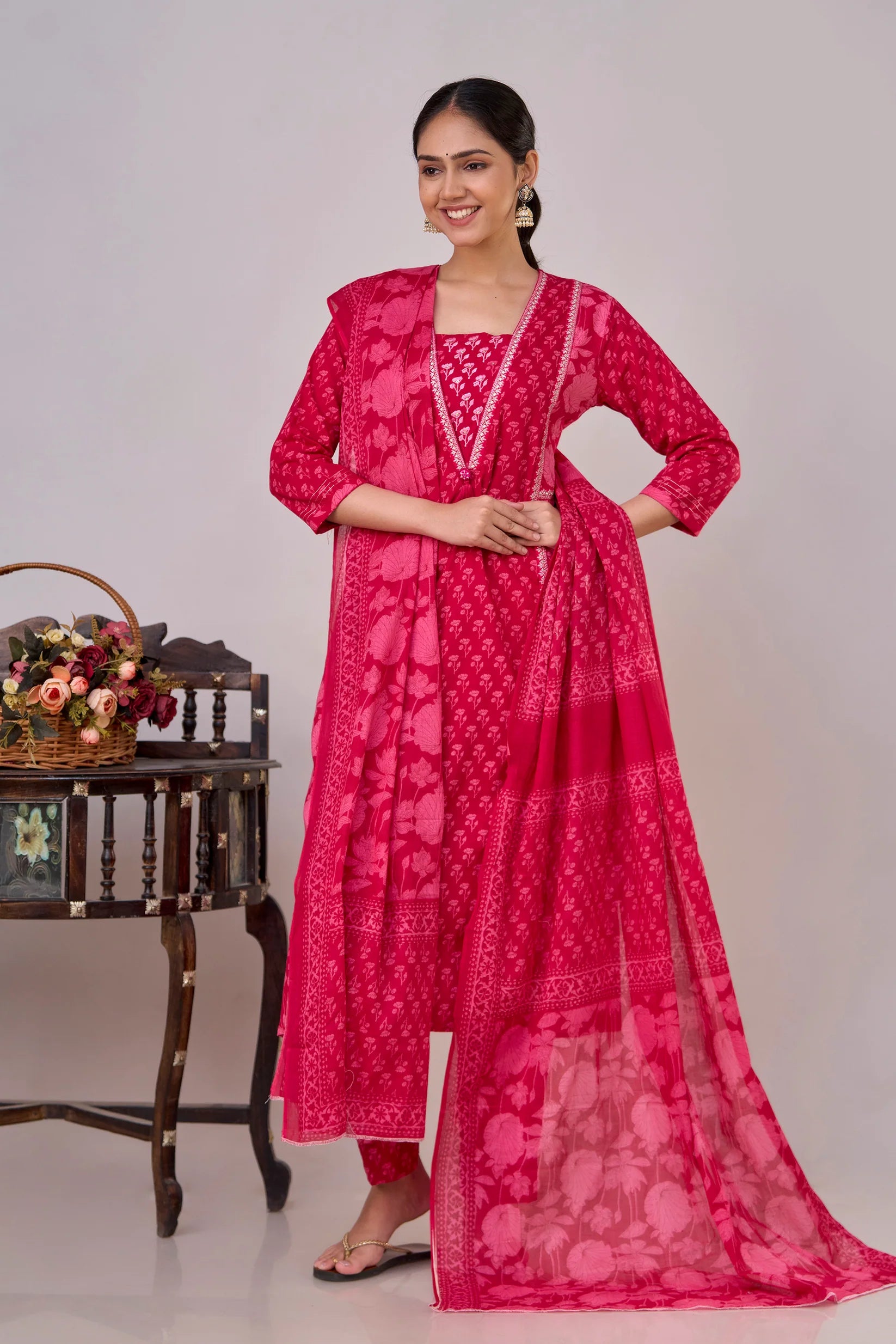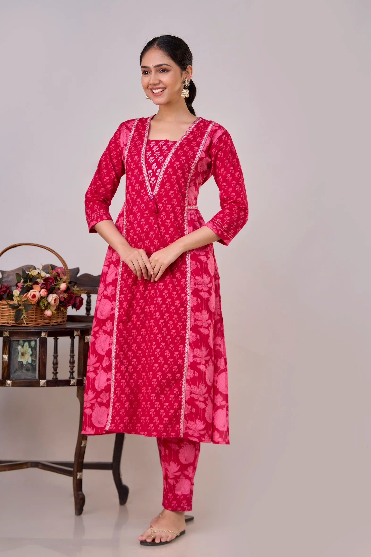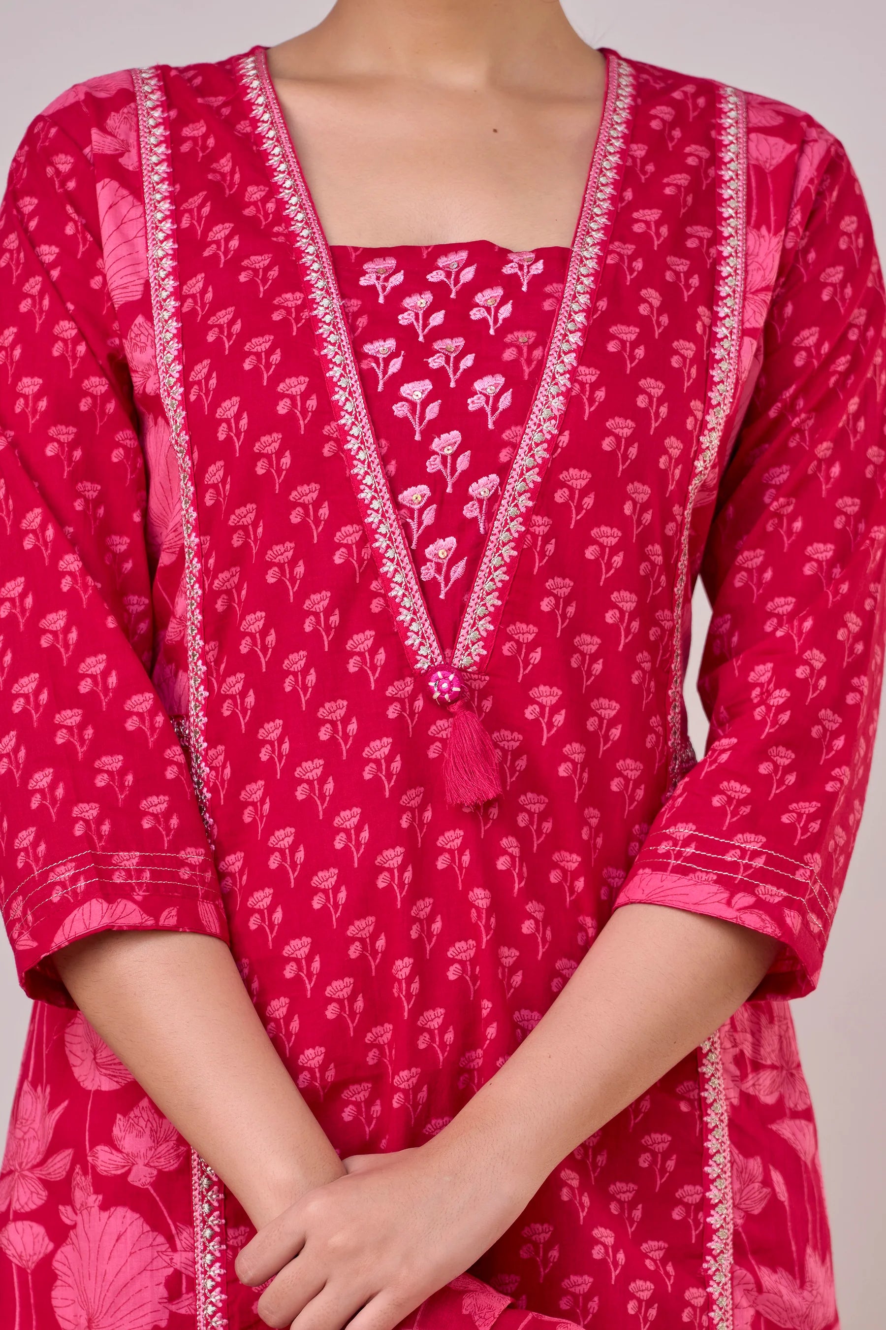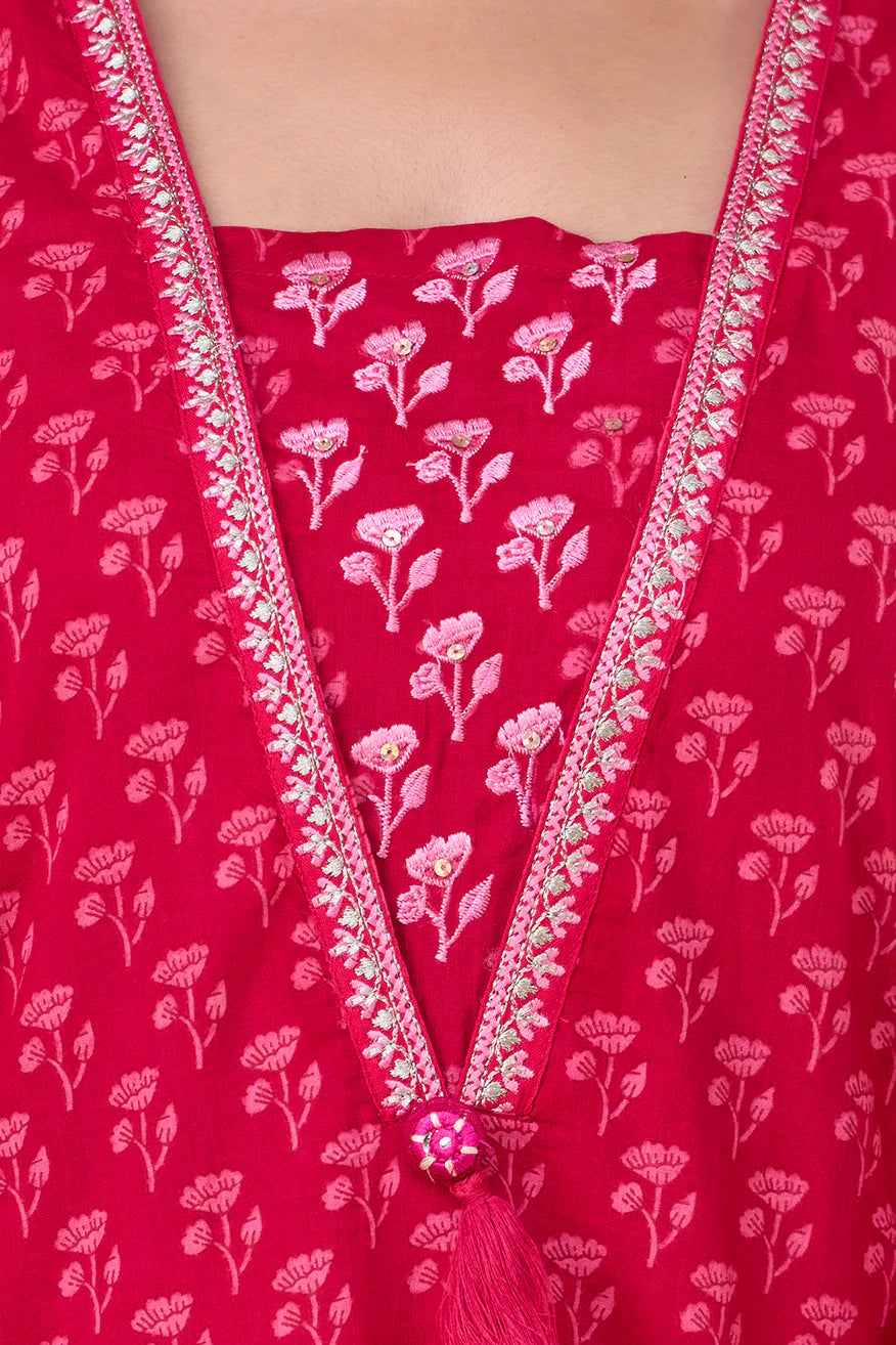 Introducing our elegant Pure Cotton Printed Embroidered Kurta Set, designed to elevate your wardrobe with its classic style and intricate detailing. Crafted from 100% pure cotton, this set promises unmatched comfort and breathability, making it perfect for any occasion.