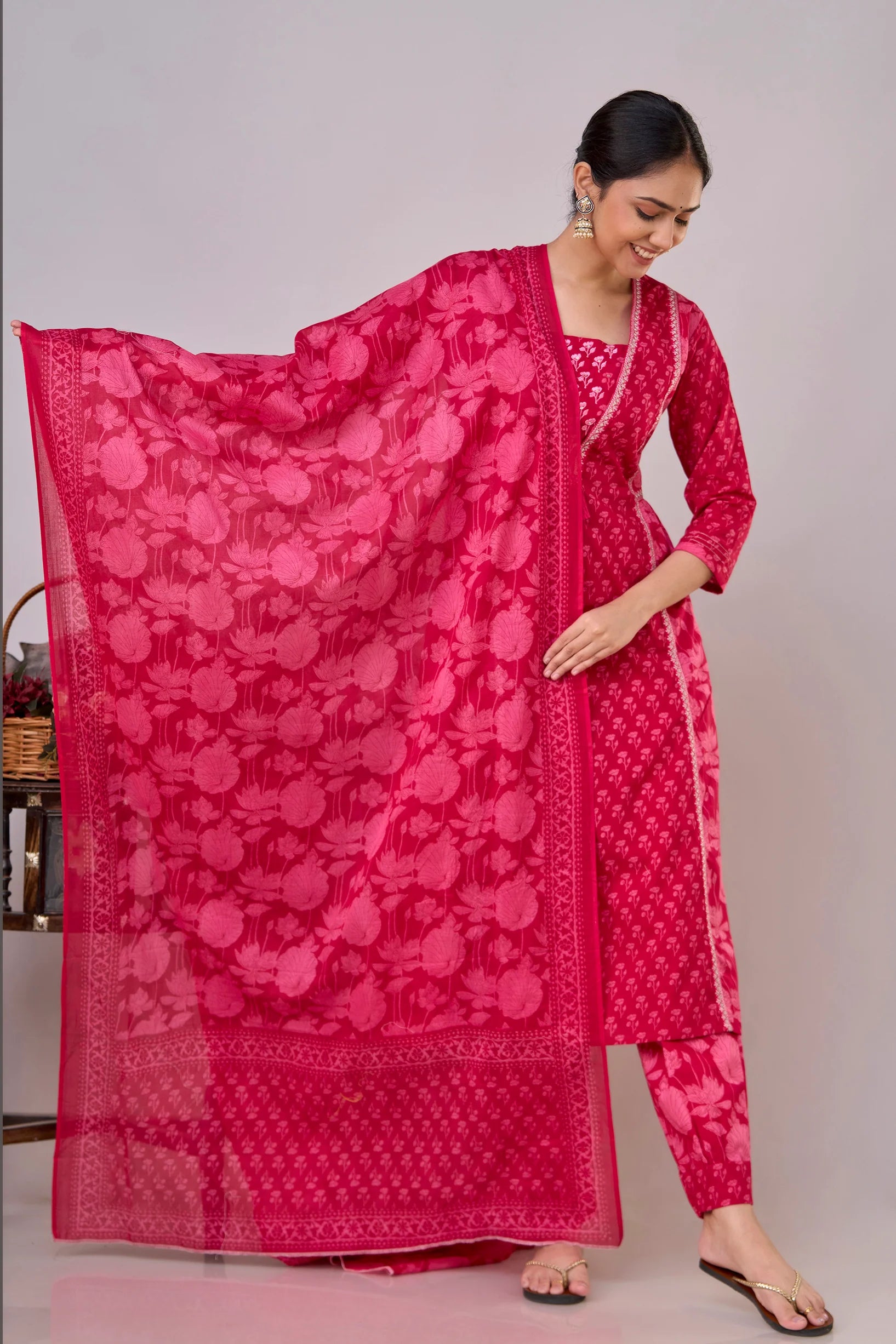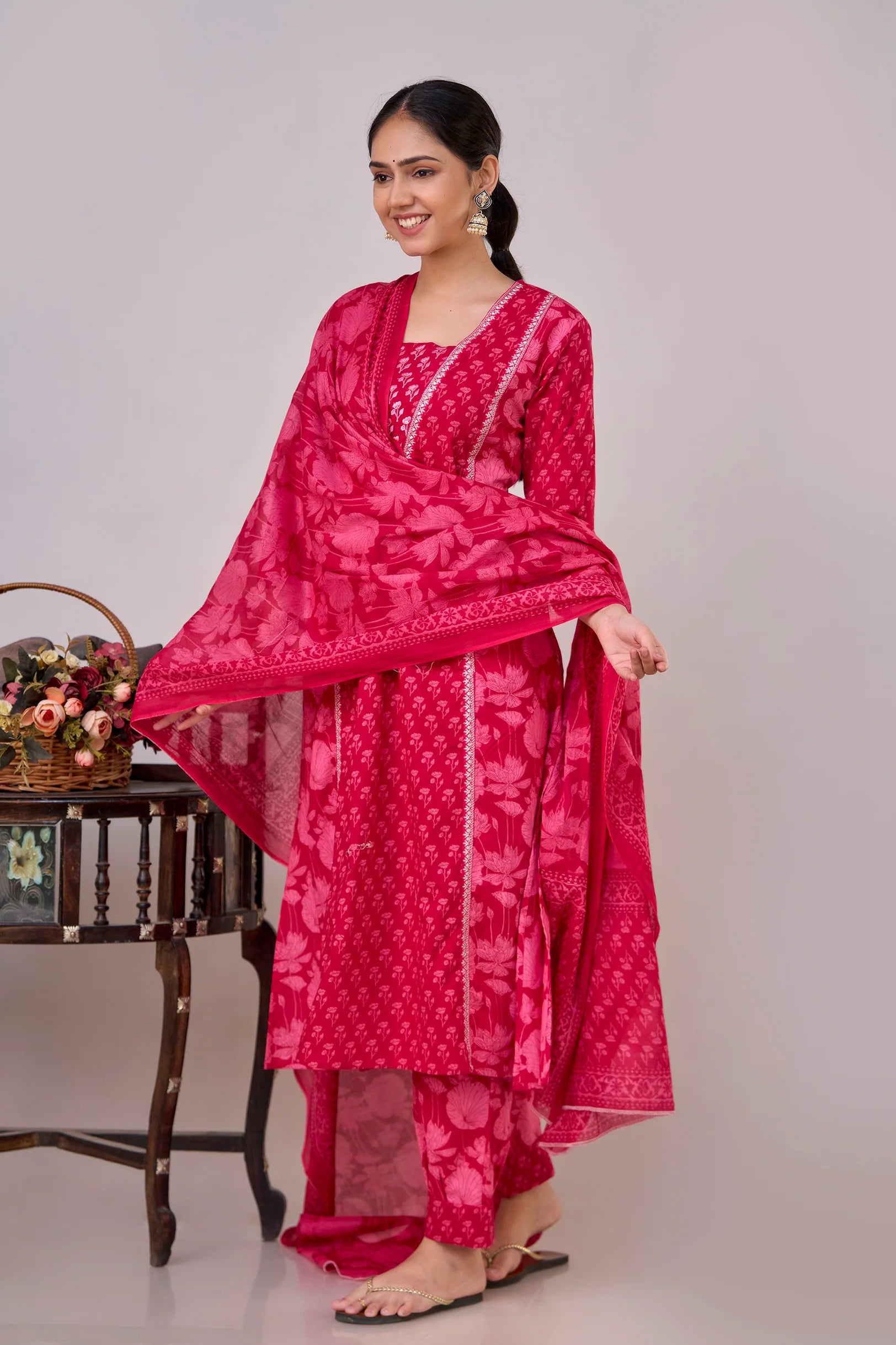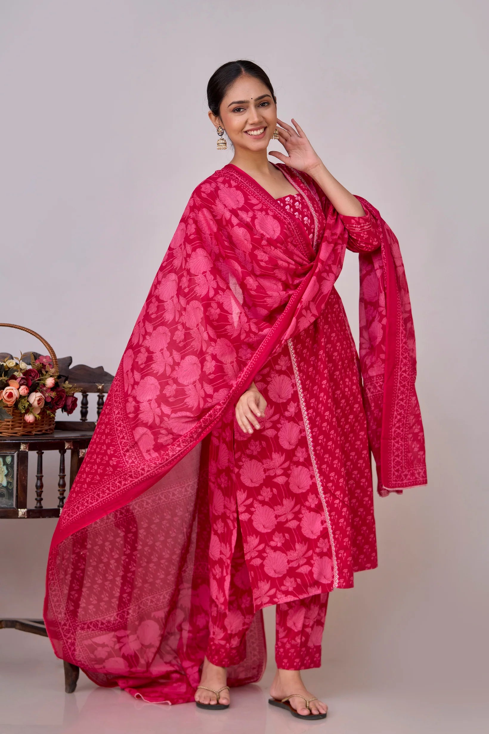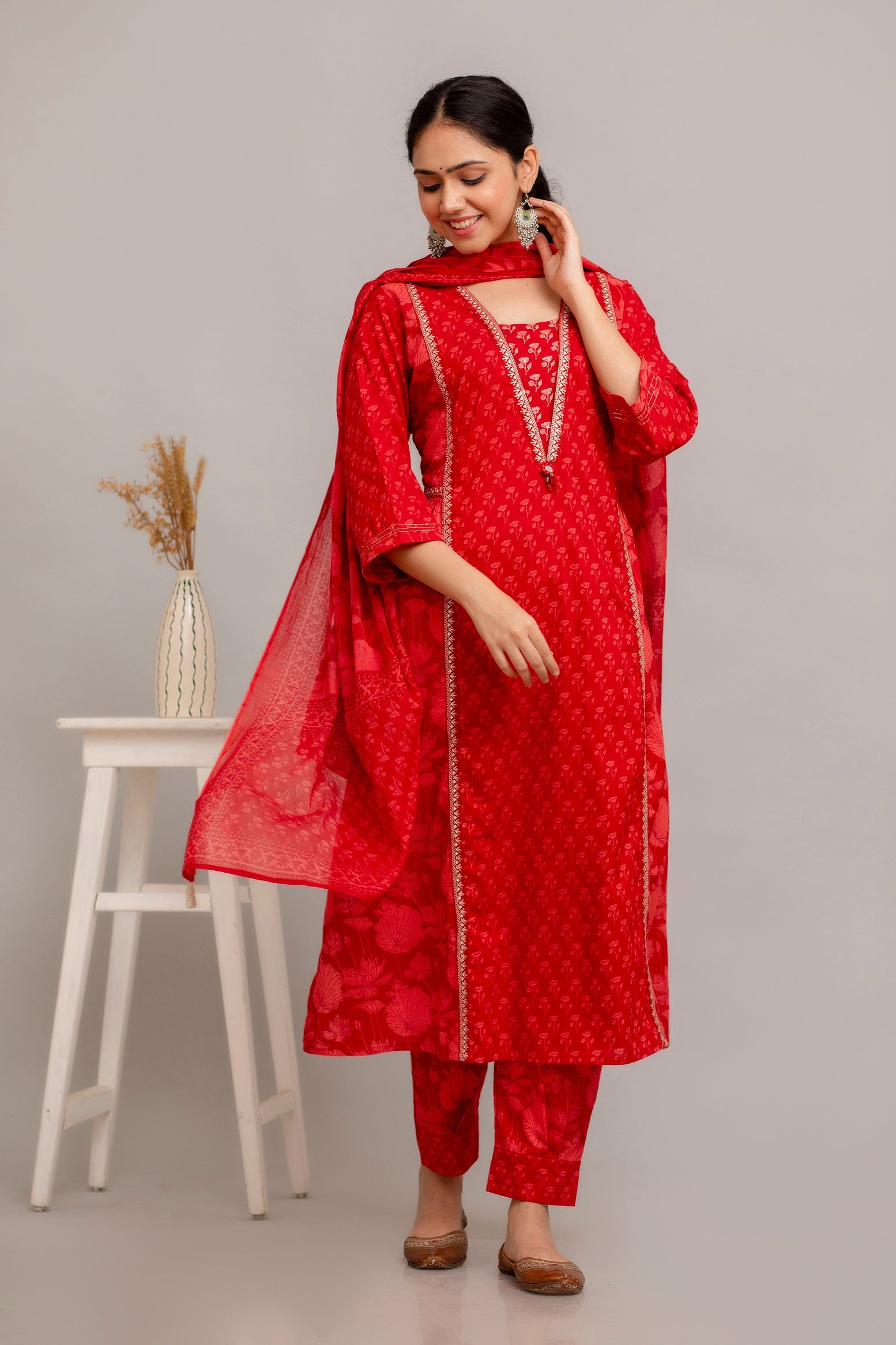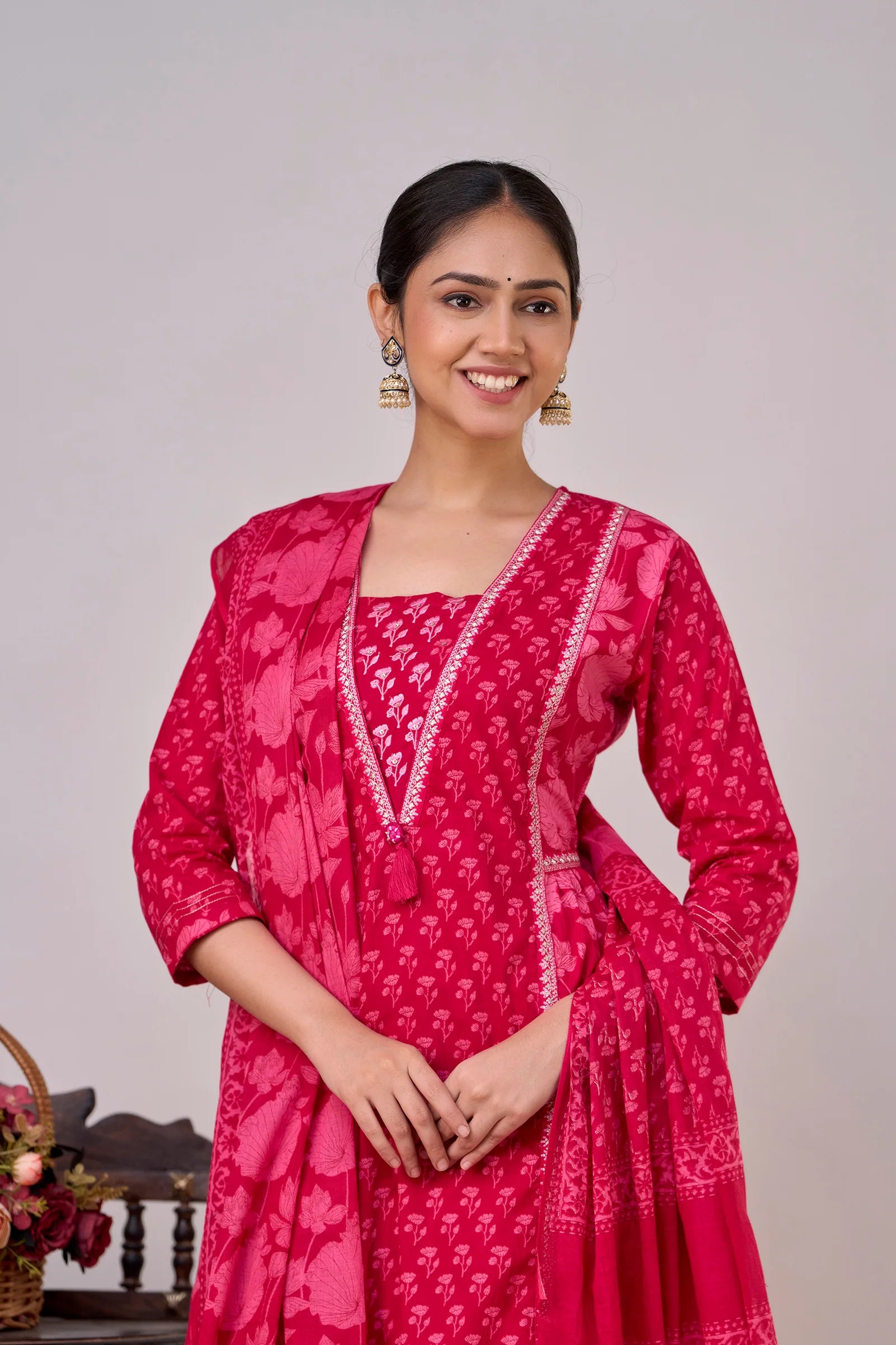 Introducing our elegant Pure Cotton Printed Embroidered Kurta Set, designed to elevate your wardrobe with its classic style and intricate detailing. Crafted from 100% pure cotton, this set promises unmatched comfort and breathability, making it perfect for any occasion.