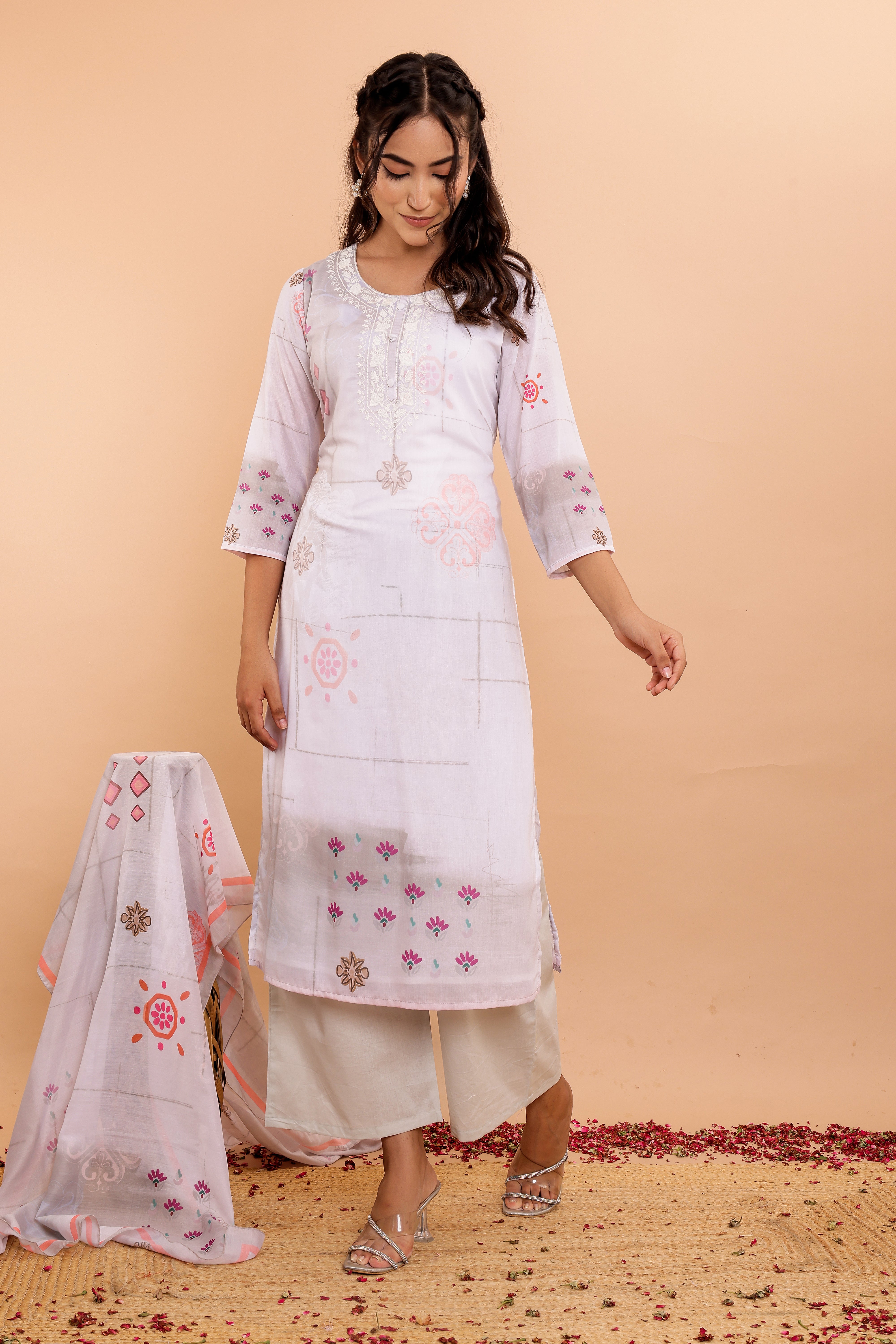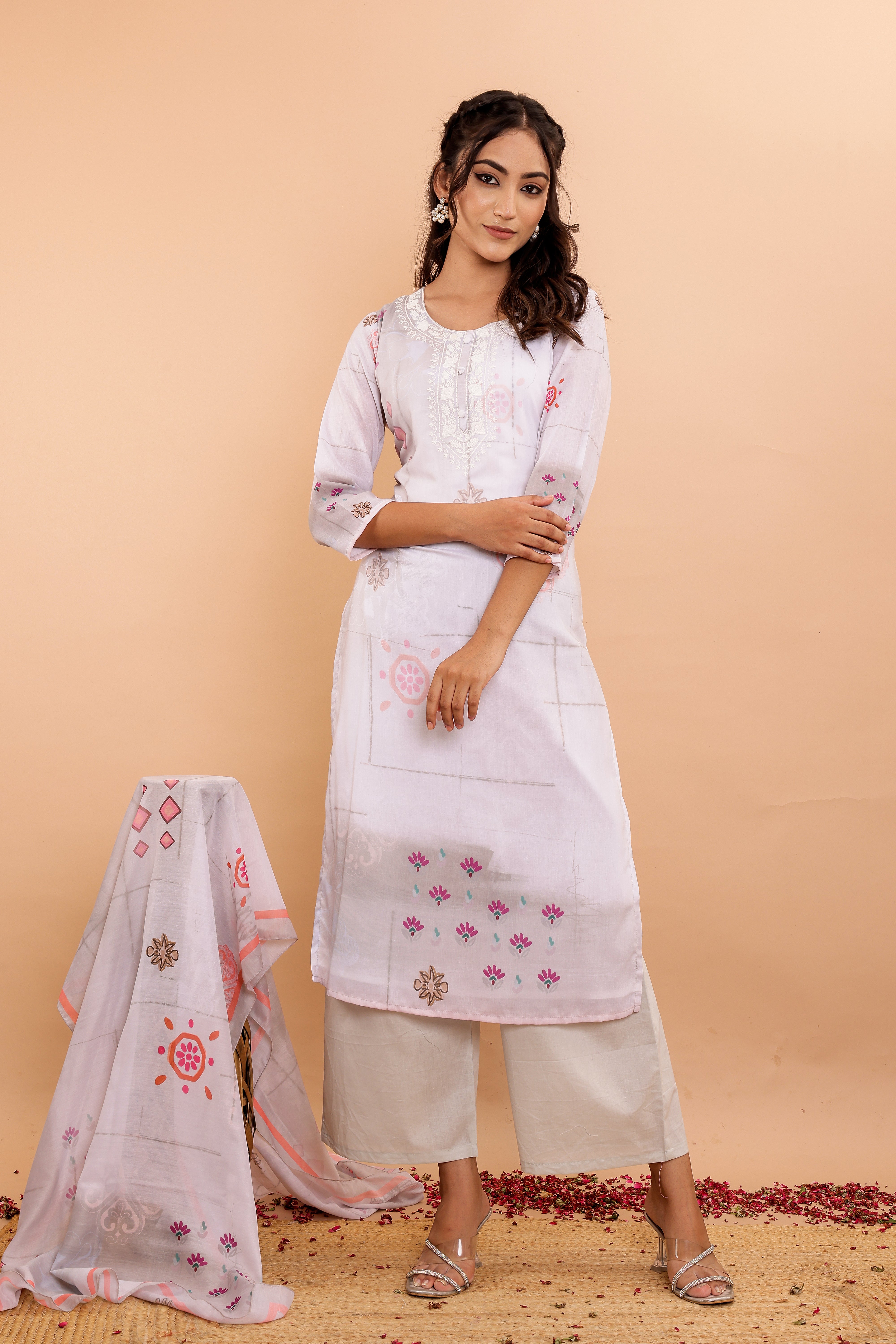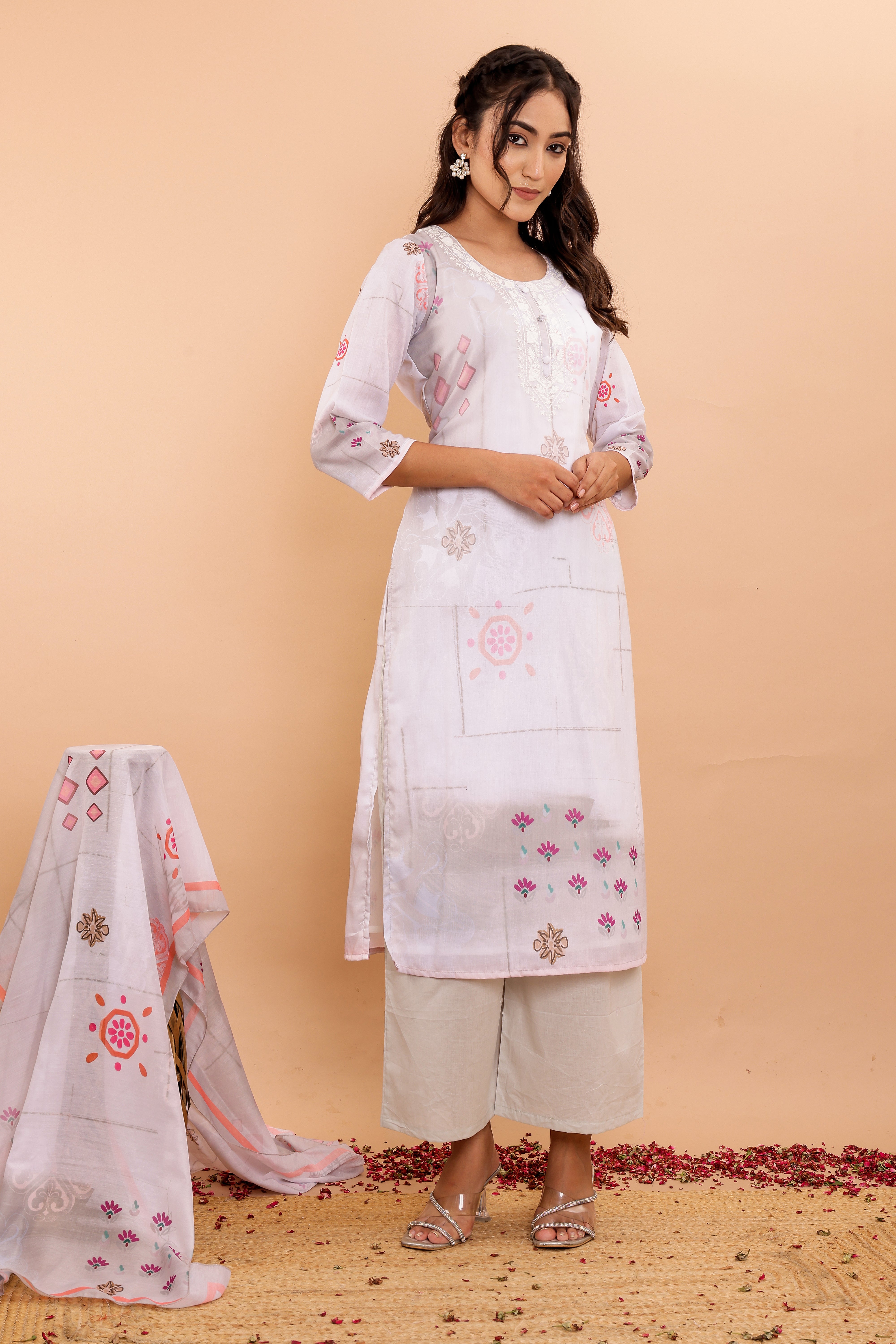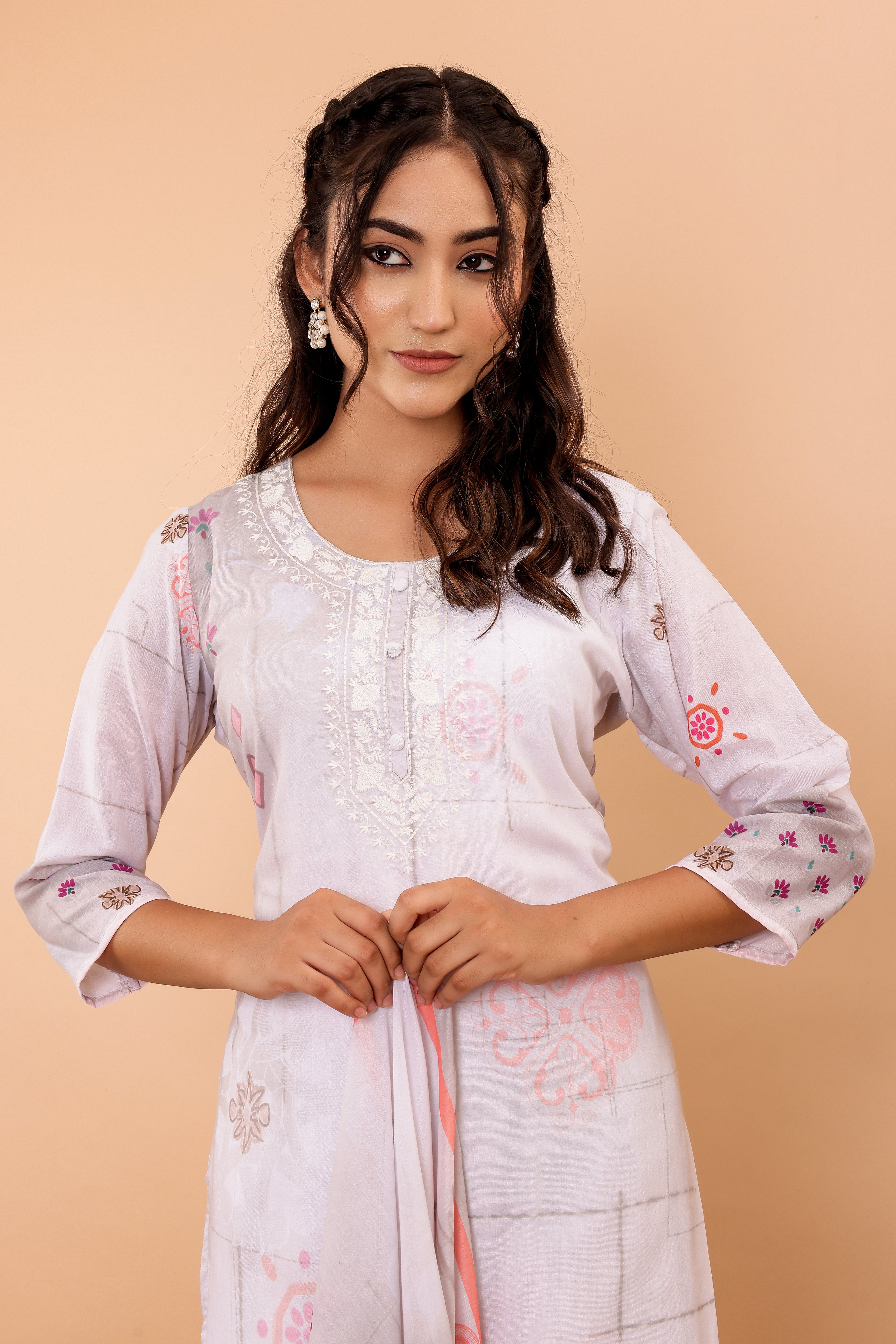 Introducing our White Mulmul Cotton Kurta, Pant, and Dupatta Set, a perfect blend of comfort and style for any occasion. Crafted from soft mulmul cotton, this 3-piece set is designed to keep you cool and comfortable while making a fashion statement.